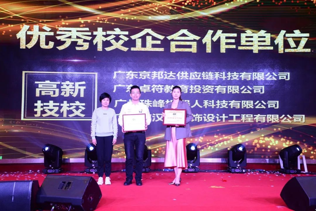 同時(shí),活動(dòng)現(xiàn)場為廣東省高新技術(shù)高級技工學(xué)校的校企合作單位:廣東京邦達(dá)供應(yīng)鏈科技有限公司、廣東卓符教育投資有限公司、廣州珠峰機(jī)器人科技有限公司、廣州市漢典裝飾設(shè)計(jì)工程有限公司;廣州市高新醫(yī)藥與食品技工學(xué)校的校企合作單位:廣州建國酒店、大參林醫(yī)藥集團(tuán)股份有限公司、佛山市三水區(qū)西南街金百合美容中心進(jìn)行了優(yōu)秀校企合作單位的表彰。