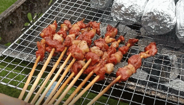 今天才發(fā)現(xiàn)這里原來(lái)個(gè)個(gè)都是大廚啊!大雞腿、雞全翅,羊肉串、香腸,金針菇、韭菜、茄子……