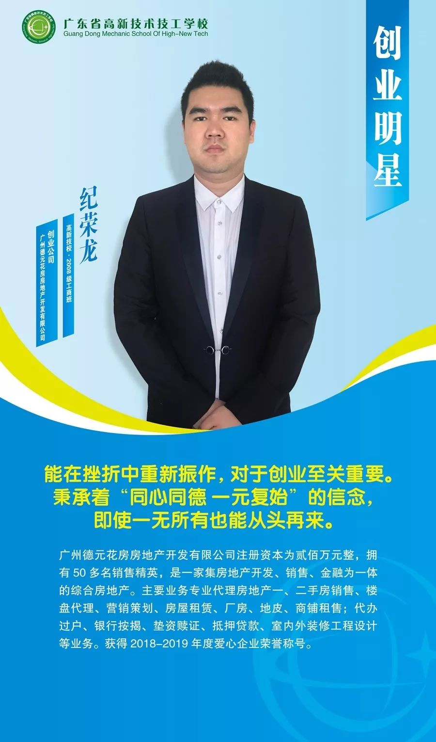 廣東省高新技術技工學校涌現出一大批創新創業的優秀校友,今天我們先展示出第一批--10位創業“明星”,他們不畏艱辛和困難,在創業路上努力拼搏。