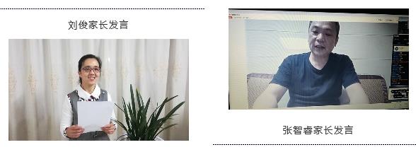 作為孩子們的第一個老師、朋友與堅強后盾,劉俊同學、張智睿同學的家長作為代表發言,表示在孩子的追夢路上,一定做到理解、支持孩子的付出和努力,盡好家長的責任,在疫情的非常時期督促和教育孩子,用自律約束自己,用行動成就自己。與此同時,相信學校,配合學校,讓孩子延續學校的優秀,不負學校和老師的期望。